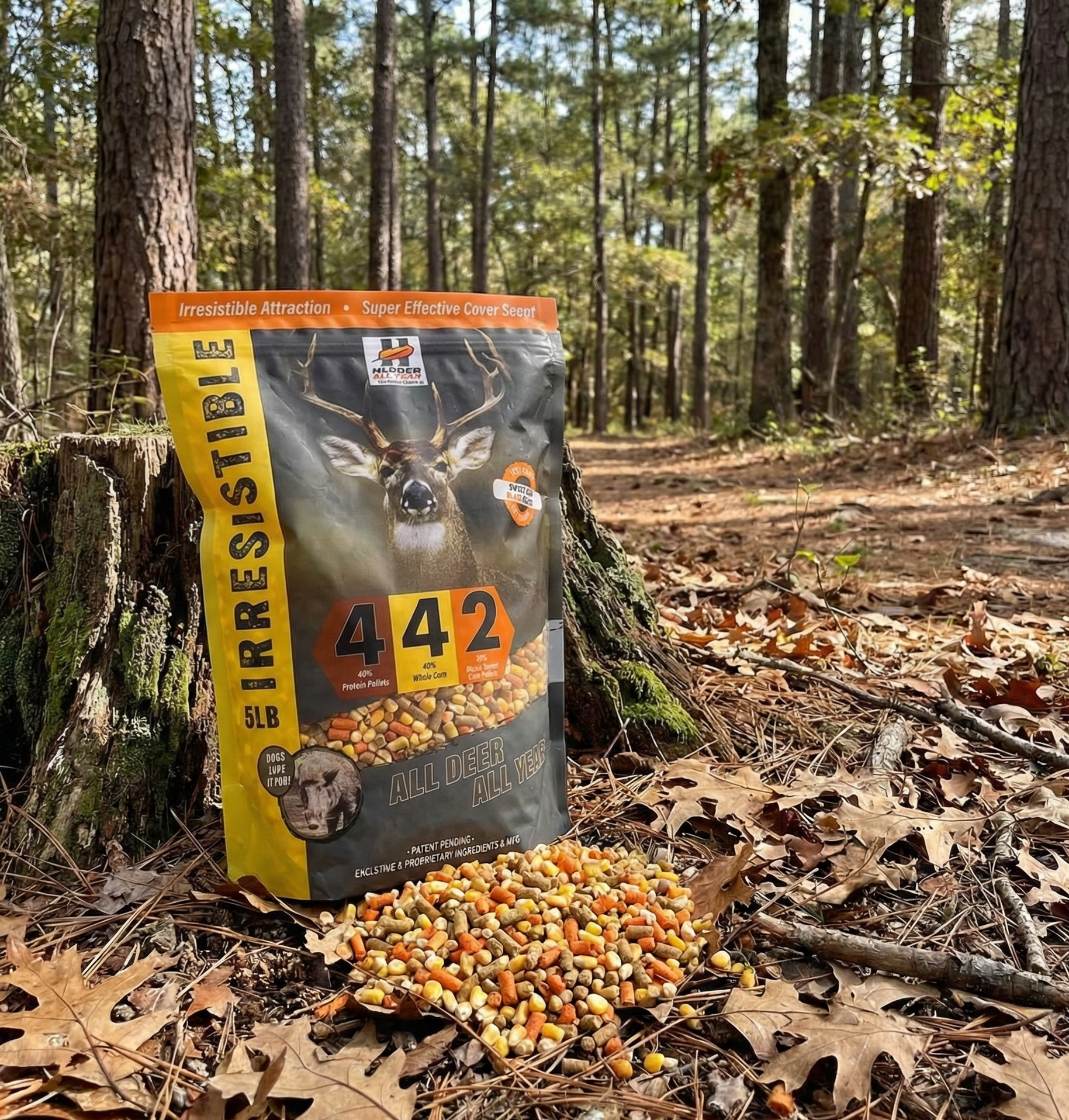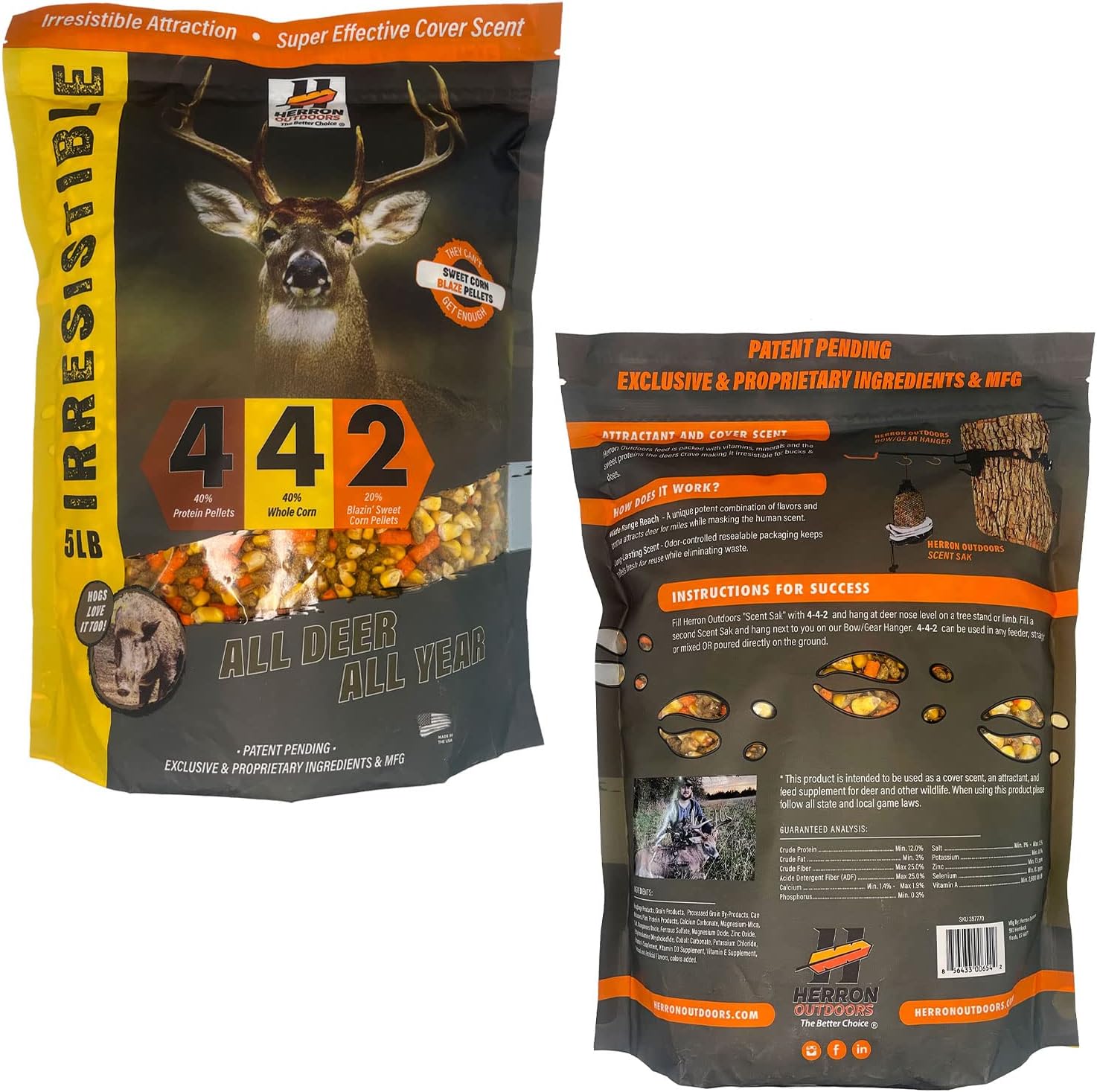 ATTRACTANT & EYE-CATCHING - Herron outdoors feed is packed with vitamins, minerals, and the sweet proteins the deer crave, making it irresistible for bucks & does. The blaze orange pellets are a proprietary blend of sweet corn flavor. It is a uniquely potent combination of flavors and aroma that attracts deer for miles while masking the human scent.