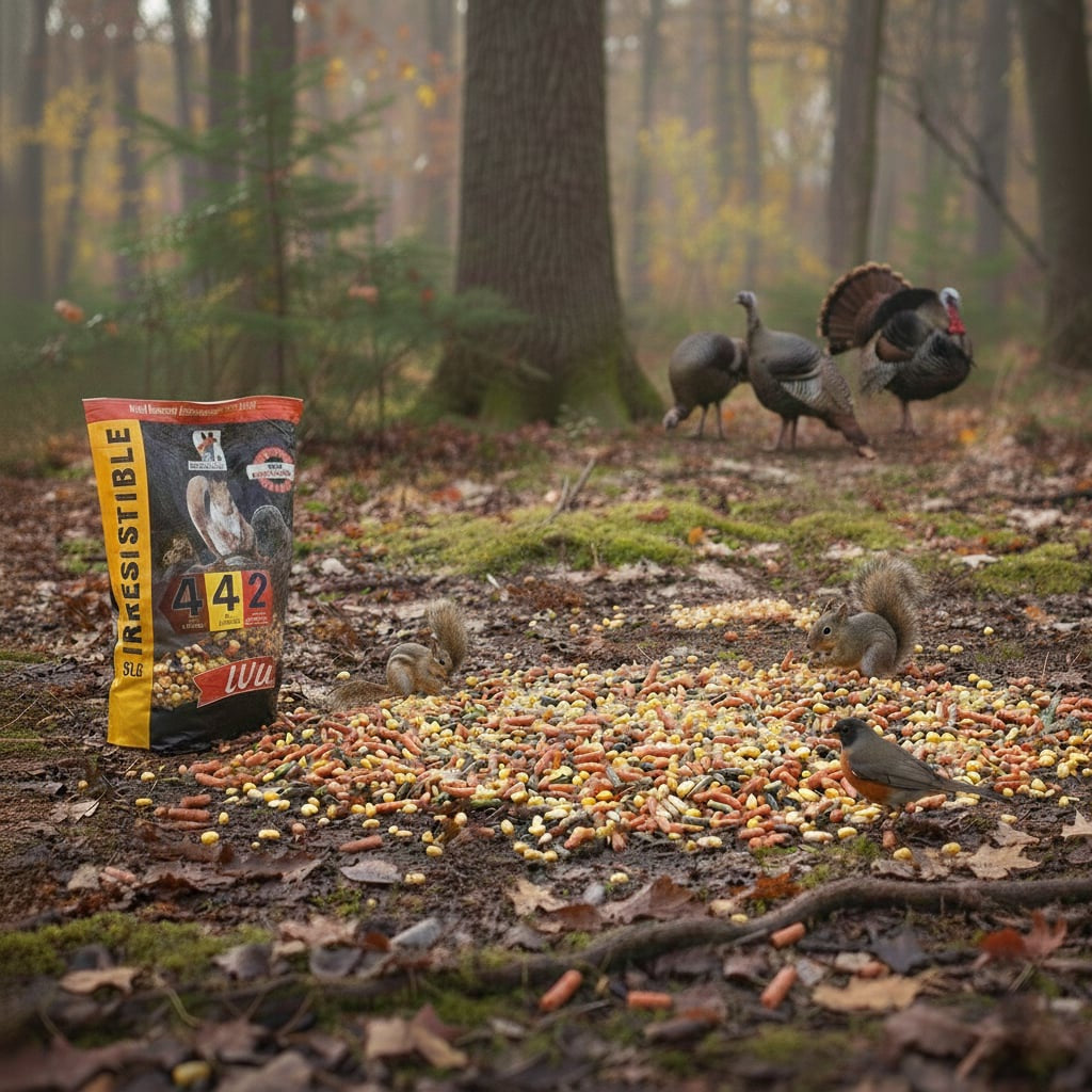 🎯 Attracts for Miles: Small animals have an extraordinary sense of smell, ranging from 500ft up to 3 miles on average. Our 4-4-2 Wild food mixture carries and attracts using unique flavor profiles. Whether it's spring, summer, fall, or winter, our critter food is designed to attract wildlife throughout the year.